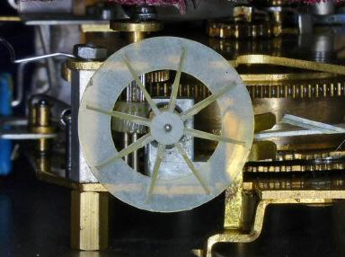 Wie bei einer Holzwalzendrehorgel muß auch hier durch einen Stecher das Ventil geöffnet werden, um den Wind in die Pfeife zu pressen.