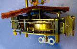 Über eine sehr sinnvolle Mechanik werden die Vögel durch kleine Exzenterscheiben bewegt. Es öffnet sich der Schnabel synchron während der Pfeifton entsteht und der Vogel dreht sich um seine Achse und schlägt aufgeregt mit seinem Gefieder.