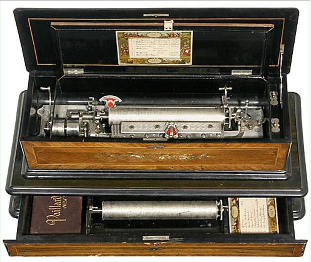 - Bei Musikdosen der Bauart "Plérodiénique" wechseln sich zwei gekoppelte